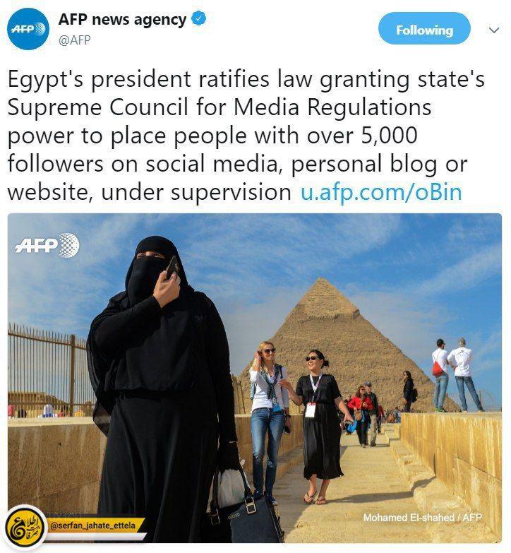 مصر قانونی تصویب کرده که طبق آن افرادی که بیش از ۵۰۰۰ فالوئر در شبکه های اجتماعی دارند تحت نظر قرار می گیرند!